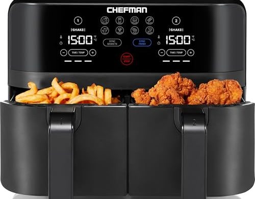 Read More...Chefman TurboFry Touch Dual Air Fryer, Maximize The Healthiest Meals With Double Basket Capacity, One-Touch Digital Controls And Shake Reminder For The Perfect Crispy And Low-Calorie Finish