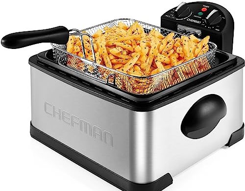 Read More...Chefman 4.5 Liter Deep Fryer w/Basket Strainer, XL Jumbo Size, Adjustable Temperature & Timer, Perfect for Fried Chicken, Shrimp, French Fries, Chips & More, Removable Oil Container, Stainless Steel