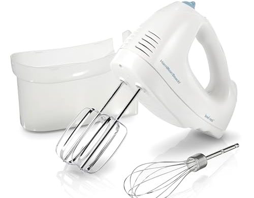 Read More...Hamilton Beach 6-Speed Electric Hand Mixer with Whisk, Traditional Beaters, Snap-On Storage Case, White
