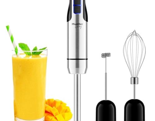 Read More...Mueller Ultra-Stick 500 Watt 9-Speed Immersion Multi-Purpose Hand Blender Heavy Duty Copper Motor Brushed 304 Stainless Steel With Whisk, Milk Frother Attachments
